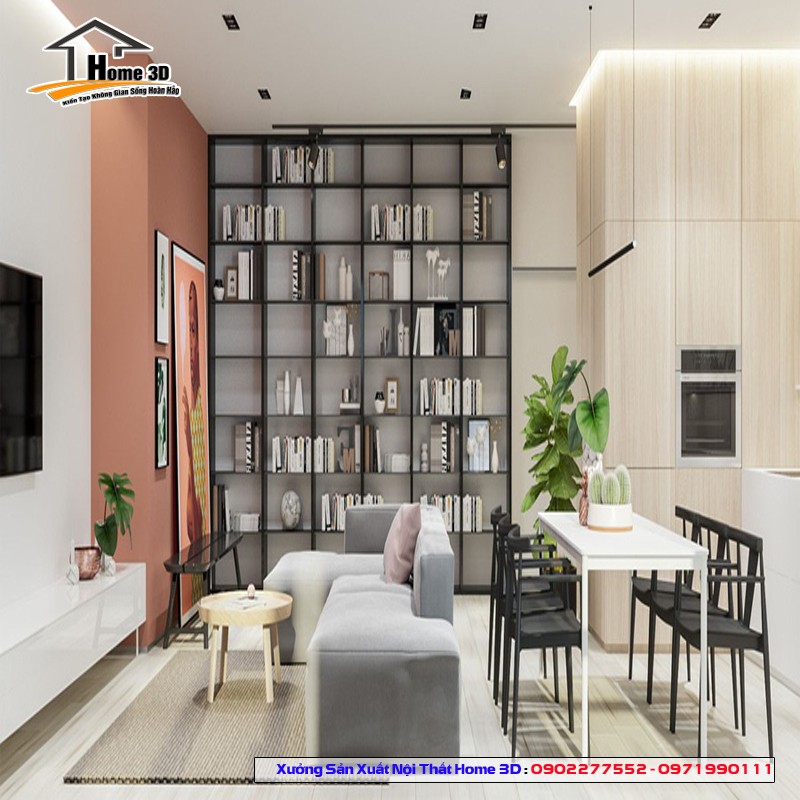 Ngoài ra, tùy theo không gian diện tích thực tế và nhu cầu sử dụng để bài trí thêm kệ trang trí, tủ đựng rượu, vách ngăn, giá sách…